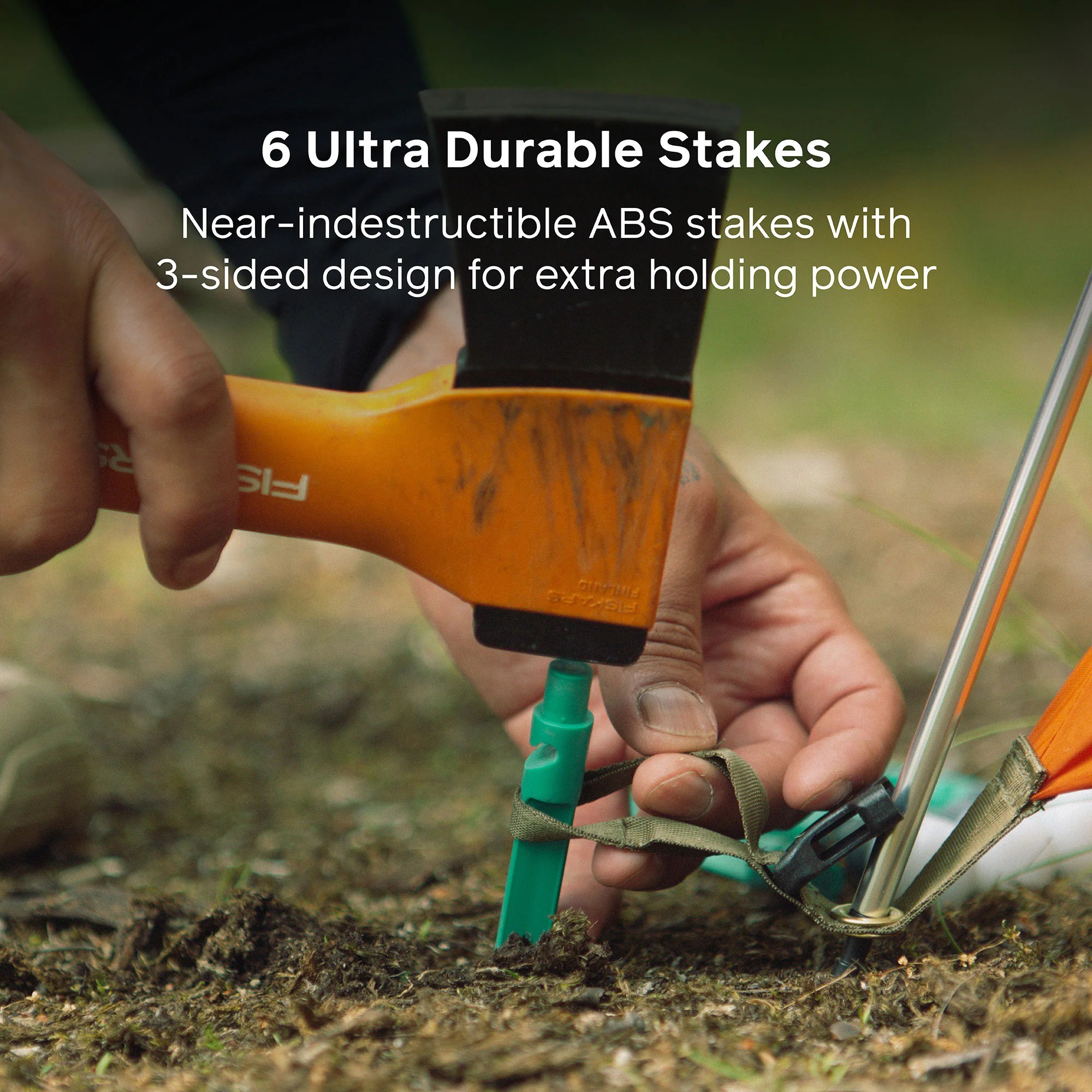 - 3. sześć sztyftów z haczykami, które mogą służyć jako osobne śledzie do namiotów lub sztyft do osadzenia lampki w ziemi